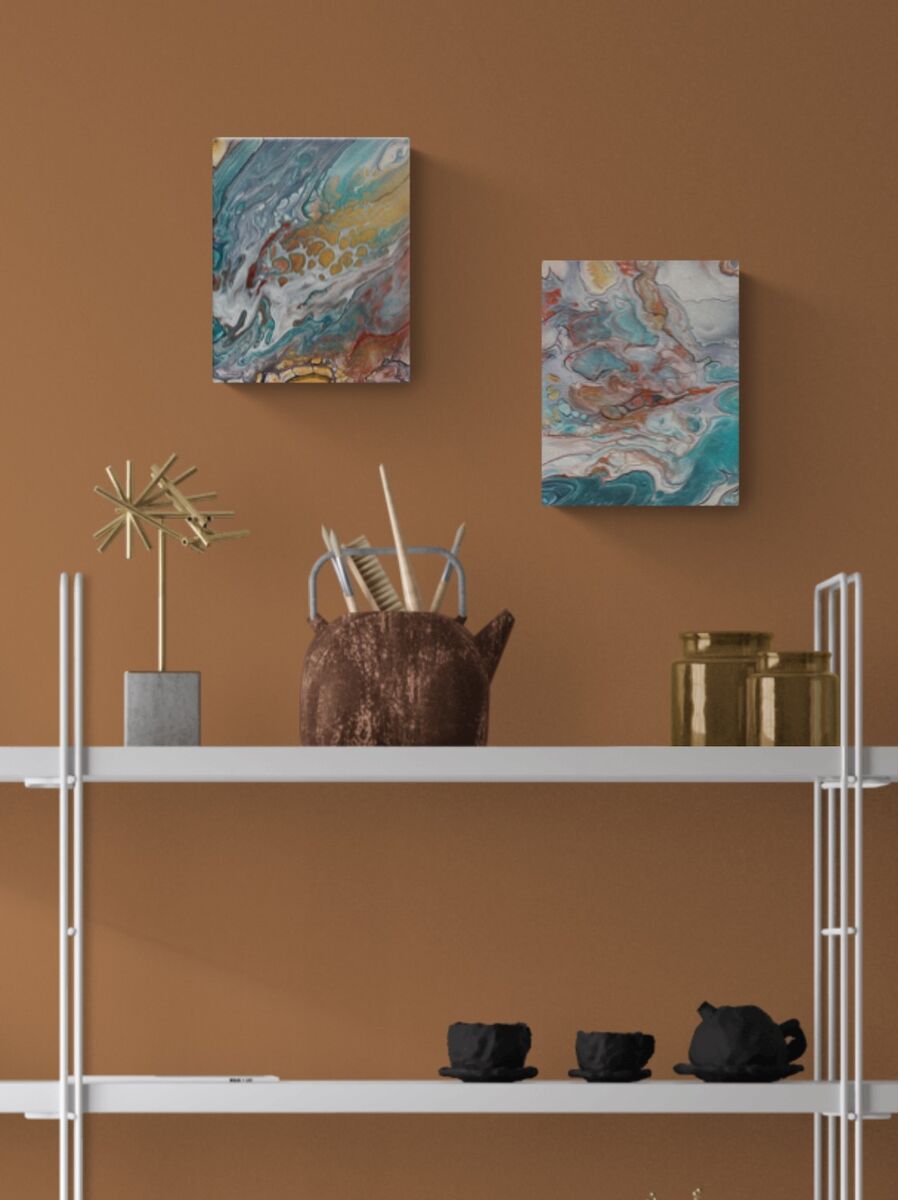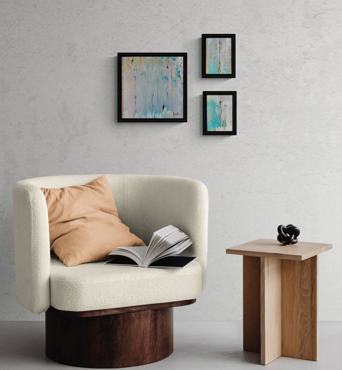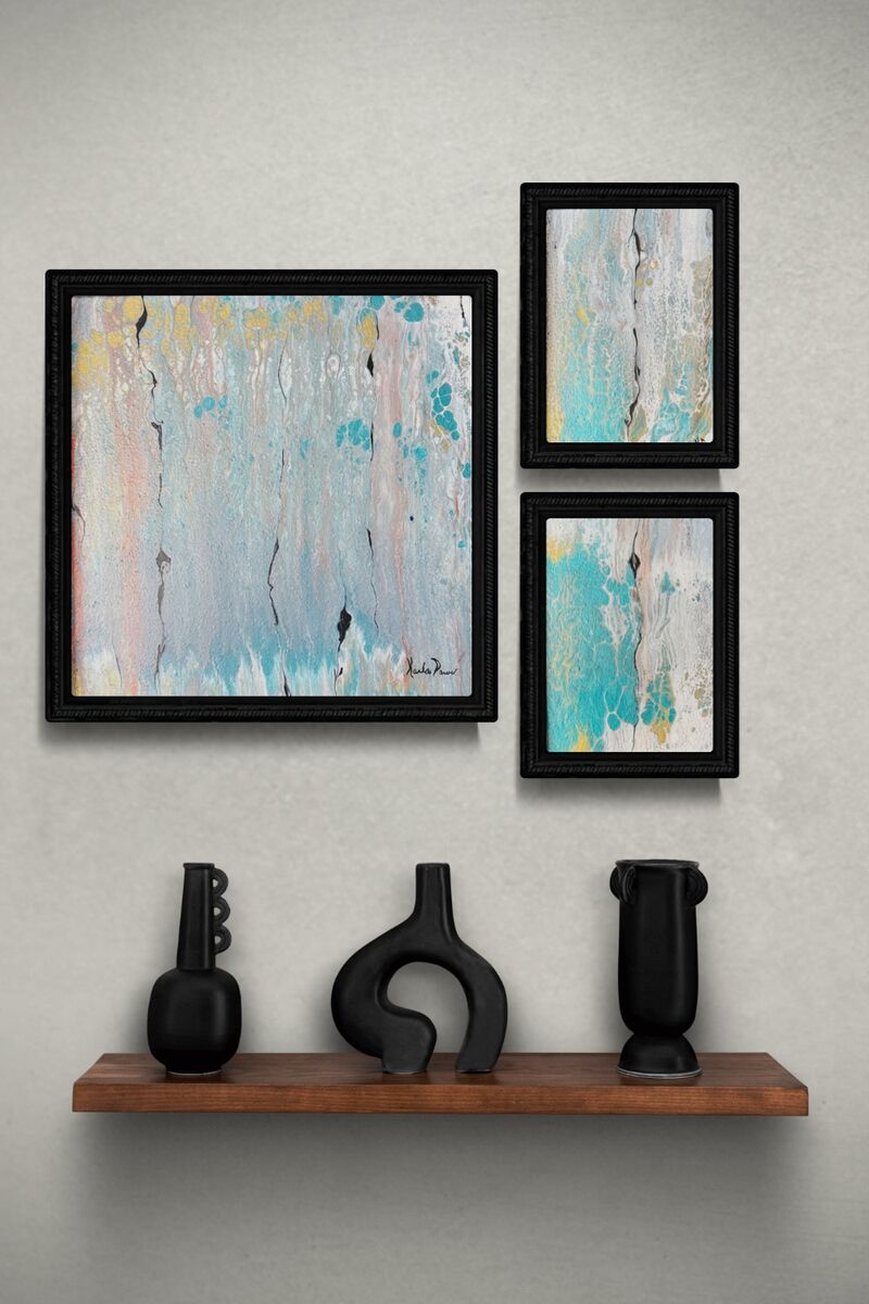 Includes black frame (12 x 12) The smaller pieces (5x7) are sold separately also with black frames. $50 each